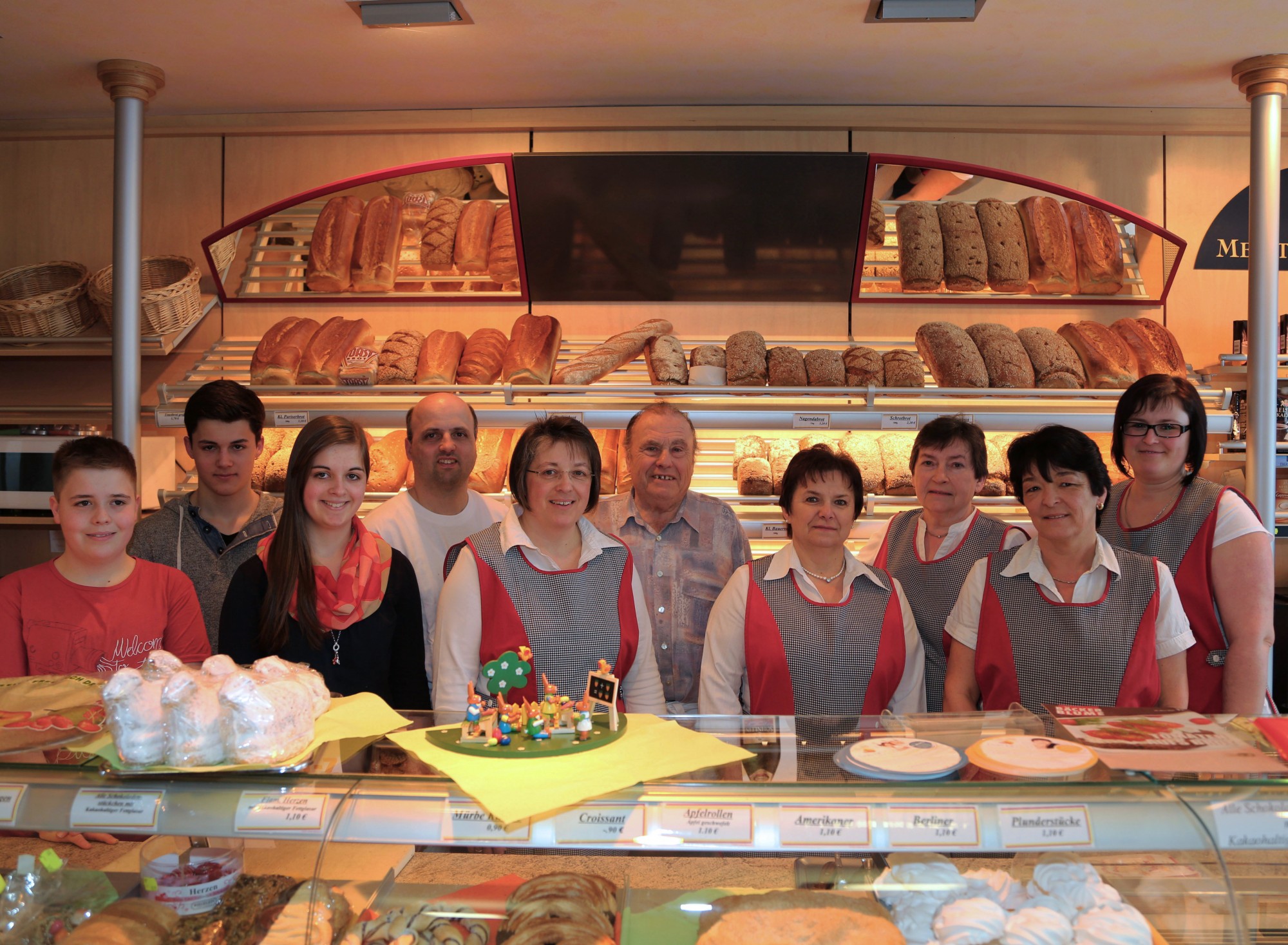 In der Bäckerei Neuffer werden Backwaren aus eigener Herstellung verkauft. Irgendwo muss man sich abheben, erklärt Reiner Neuffer, der aktuell vor allem auf den Dinkeltrend setzt. Im Familienbetrieb mit zwölf Mitarbeitern helfen auch die drei Kinder mit. Für das Vertrauen der Kunden bedankt sich die Familie Neuffer mit Sonderangeboten nach dem Motto „Einkaufen wo man zu Hause ist.“