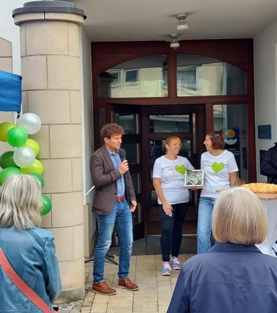 Die Gäste konnten sich über verschiedene Redebeiträge freuen: Bürgermeister Herr Ganser würdigte die Bedeutung des Dorfladens, ebenso die Betreiberinnen Carina Gless und Corinna Kroh. Auch Matthias Utz sowie Herr Ladner, der mit seinem Unternehmen Ladner’s Ochsenbeck täglich frische, regionale Backwaren liefert, sprachen Worte der Anerkennung.
