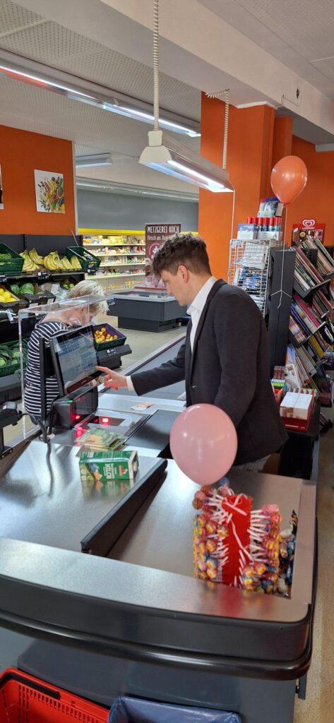 Wir von Utz stellen hier als Hauptlieferant und gemeinsam mit regionalen Partnern die umfassende Versorgung der rund 2.000 Einwohnerinnen und Einwohner sicher. Eier kommen vom Geflügelhof Härle aus Oberstadion-Mundeldingen, Wurst- und Fleischwaren von der Metzgerei Koch aus Biberach, Obst und Gemüse liefert der Fruchthof Nagel aus Neu-Ulm, und täglich frische Backwaren stammen von der Bäckerei Buck’s Höfle aus Ehingen.