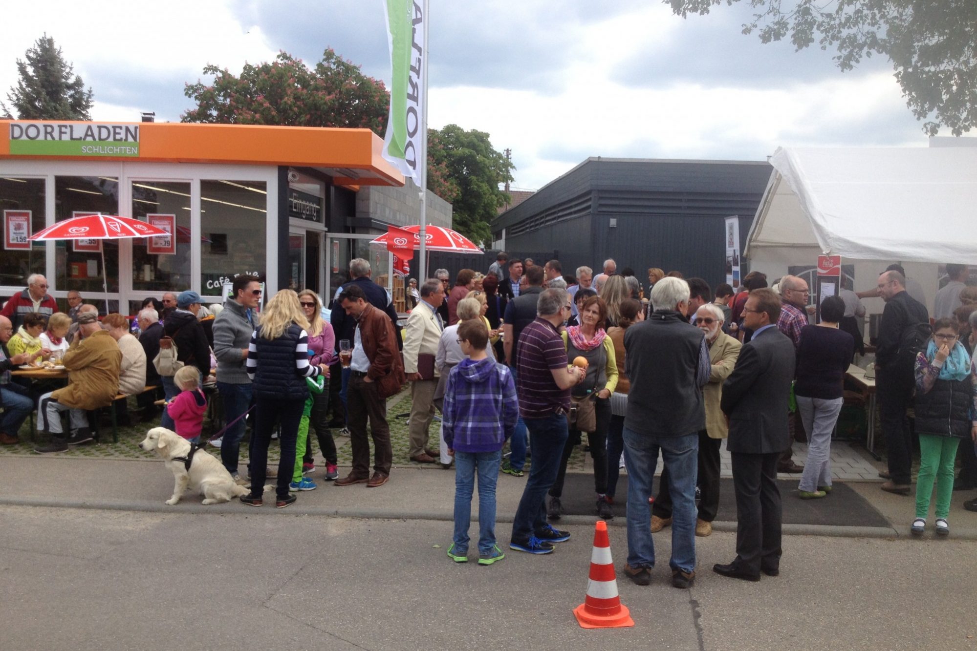 Der offizielle Festakt zur Einweihung des neuen Dorfladens fand am Samstag, 23. Mai 2015 statt. Mit Musik, Ansprachen, Verlosung sowie Essen und Trinken wurde gefeiert. Doch das Erfreulichste war natürlich der Dorfladen selbst mit allen Artikeln, die man zum täglichen Leben benötigt.