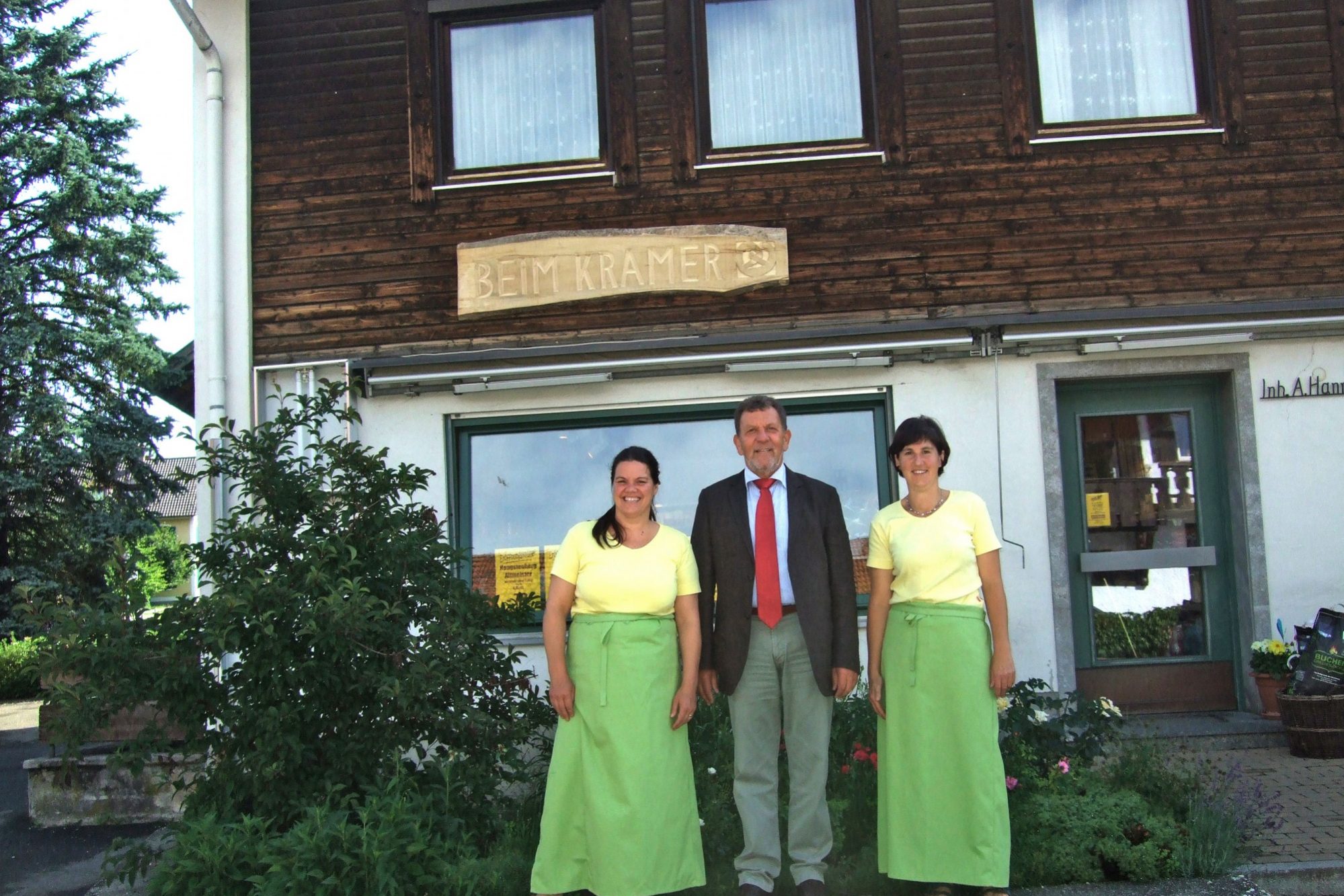 Details„Beim Kramer“ steht auf dem nagelneuen, hölzernen Türschild über dem Schaufenster.